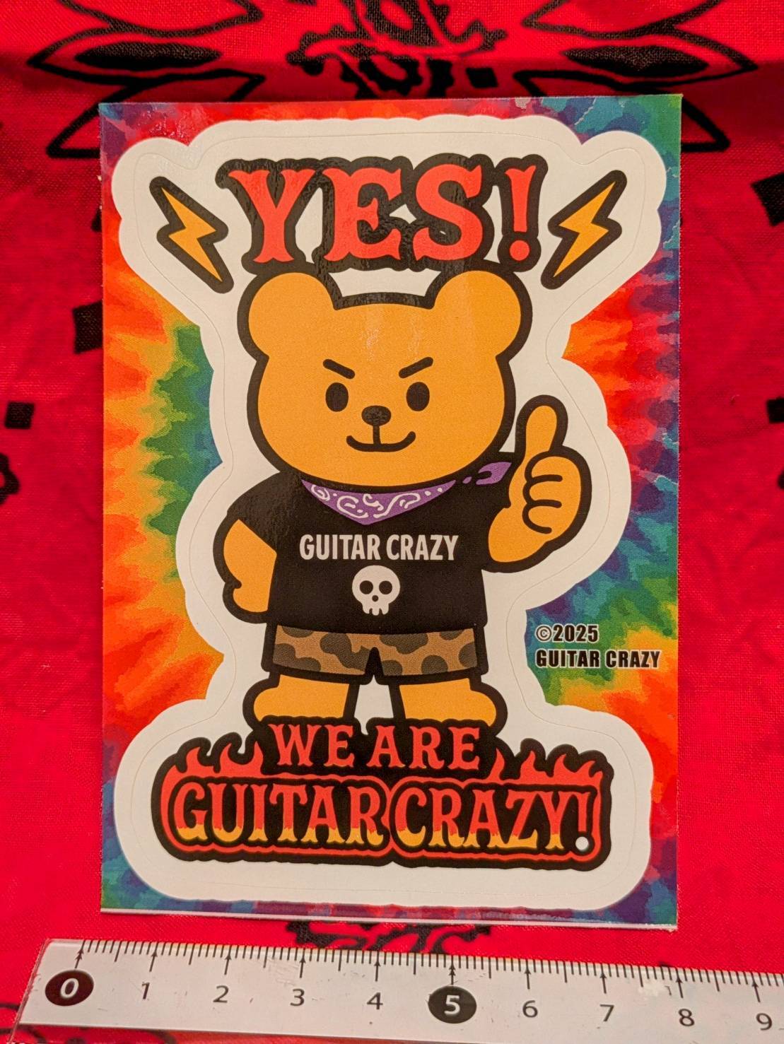 「YES!WE ARE GUITAR CRAZY!」とサムアップポーズでキめるCRAZY BEARシールです!